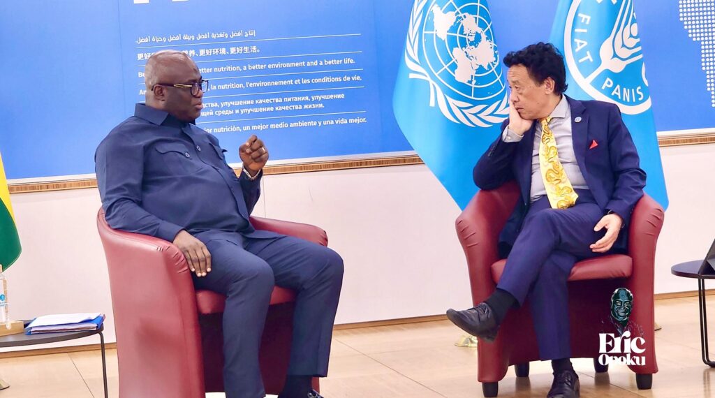 Ghana’s Minister for Food and Agriculture, Hon. Eric Opoku, has held a bilateral meeting with the Director-General of the Food and Agriculture Organization (FAO), Dr. QU Dongyu, at the FAO headquarters in Rome, on the sidelines of the 44th Session of the FAO Conference.