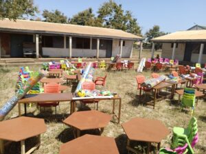 The items, which include hexagonal tables and chairs for pupils, teachers’ tables and chairs, phonics books, wall charts, talking mats, crayons, pencils, markers, scissors, glue, A4 paper, curriculum guides, footballs, and various play and teaching aids such as toy boxes, counters, shapes sets, and big books, teaching aids, storybooks, numeracy kits, and other foundational teaching and learning resources, aims to enhance the quality of early-grade education.
