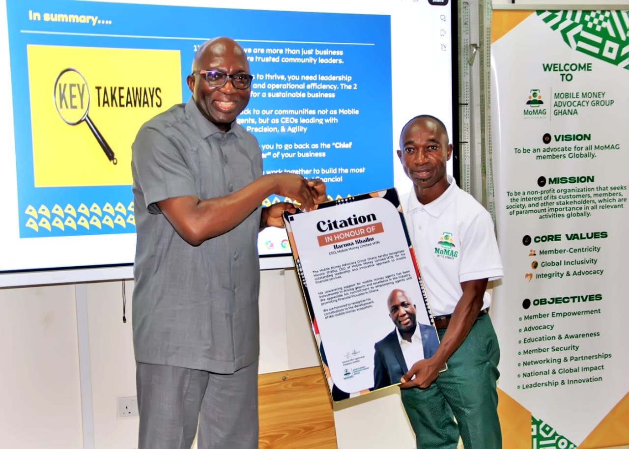 MoMAG presented two citations, one to the MobileMoney LTD CEO and one to MTN Ghana, in recognition of their significant support and commitment to the agent network.