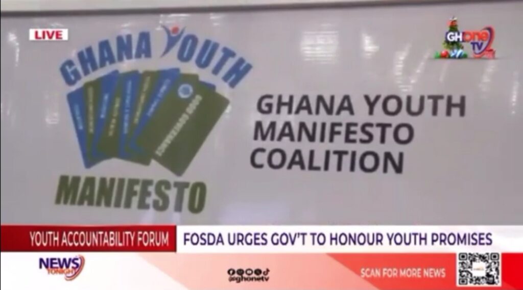 The appeal was made during a Youth Accountability Forum convened by the Ghana Youth Manifesto Coalition, in partnership with the Foundation for Security and Development in Africa (FOSDA) and other collaborators, with support from OXFAM Ghana and ActionAid Ghana. The forum was held under the theme “Tracking Commitments and Shaping Tomorrow.”