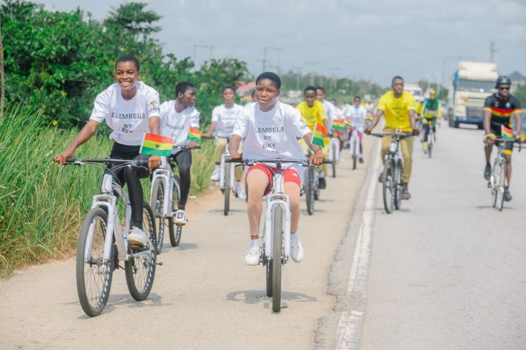 Joined by the gladiators bicycle club from Accra,female students drawn from various schools in the district rode bicycles from the Aya community center to Kwame Nkrumah mausoleum in Nkroful.