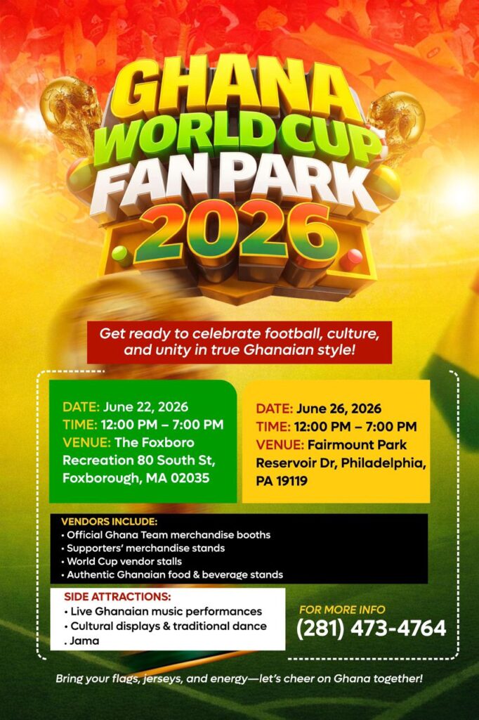 Known for its passionate sports culture, the Boston area would transform into a sea of red, gold, green, and black as Ghanaian supporters unite to cheer on the Black Stars during the world’s biggest football showpiece.