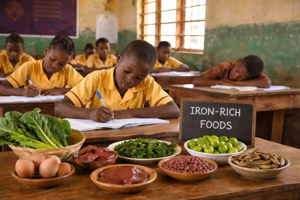 While education debates often focus on textbooks, teacher training, and infrastructure, scientists say the real deficit starts on children’s plates. Iron is essential for carrying oxygen to the brain. Without enough of it, concentration drops, energy fades, and learning stalls. A child who misses breakfast or eats a diet heavy in staples like maize and cassava but light in meat, beans, or leafy greens is at risk.