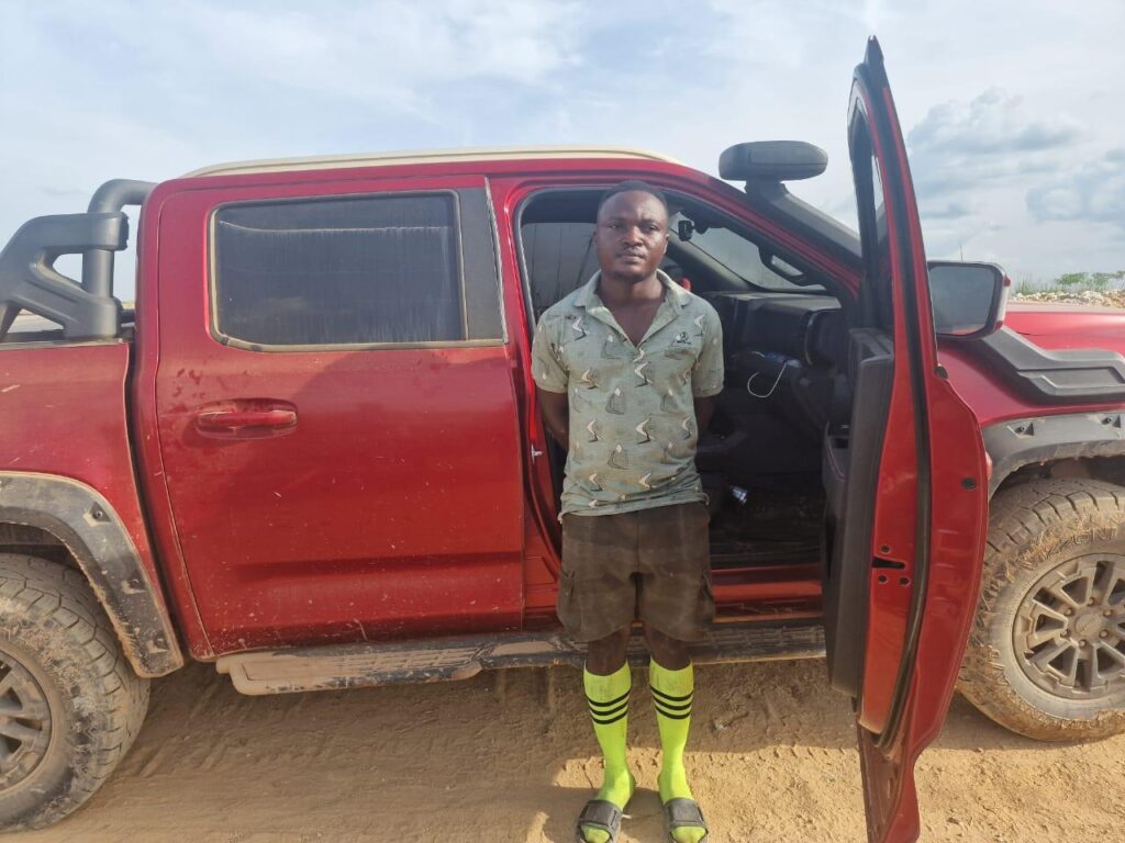 Upon arrival, the taskforce encountered multiple individuals actively mining along the riverbanks and within the Offin River itself. The sudden appearance of the enforcement team triggered a mass retreat, with several suspects fleeing into nearby bushland. However, two individuals later identified as Comfort Abayie, 36, and Ayenga Abraham, 28 were apprehended at the scene.