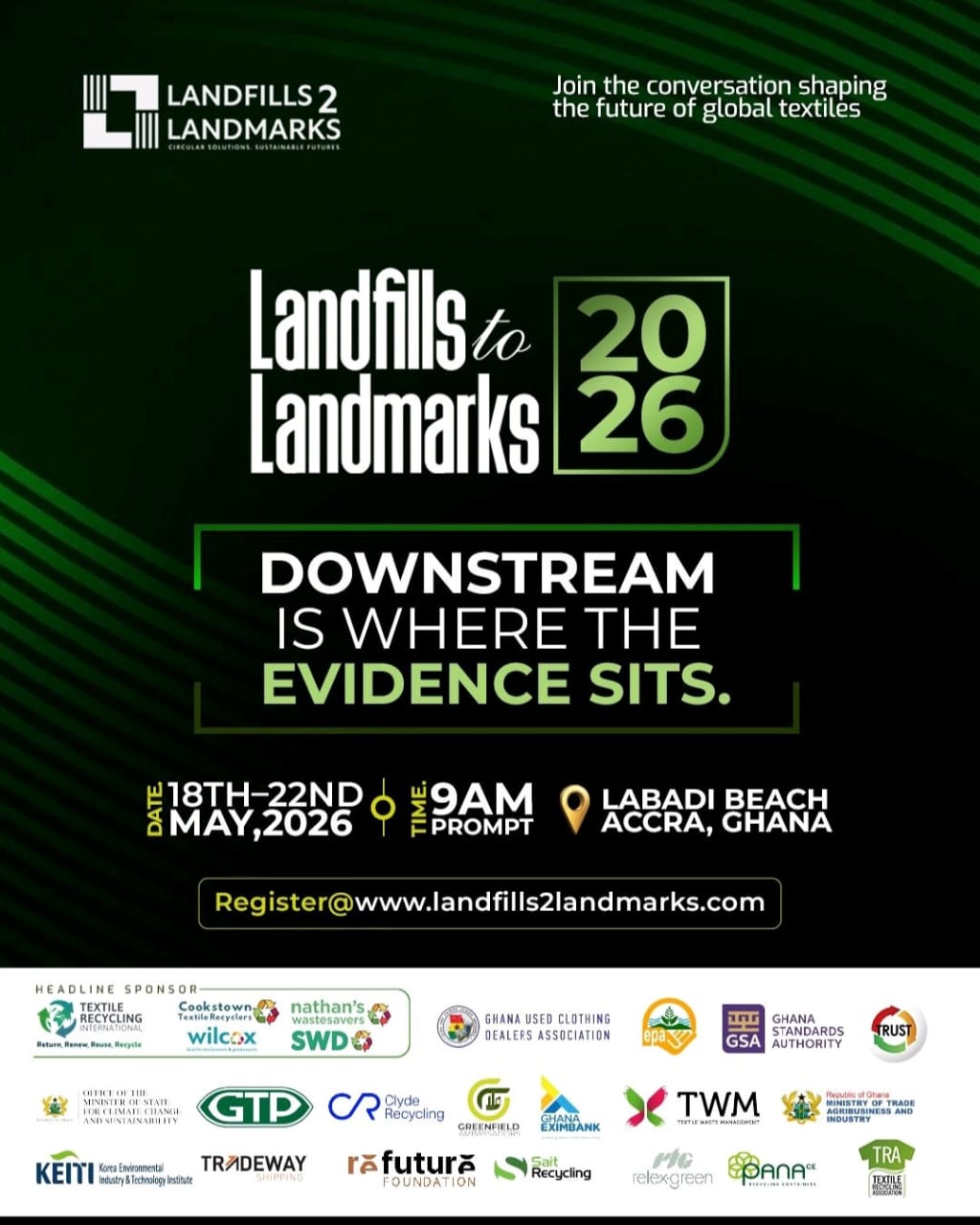 About Landfills2Landmarks Landfills2Landmarks is a platform advancing circular solutions, downstream accountability, and practical systems change across the textile value chain. Landfills2Landmarks 2026 will convene in Accra from 18 to 22 May 2026.