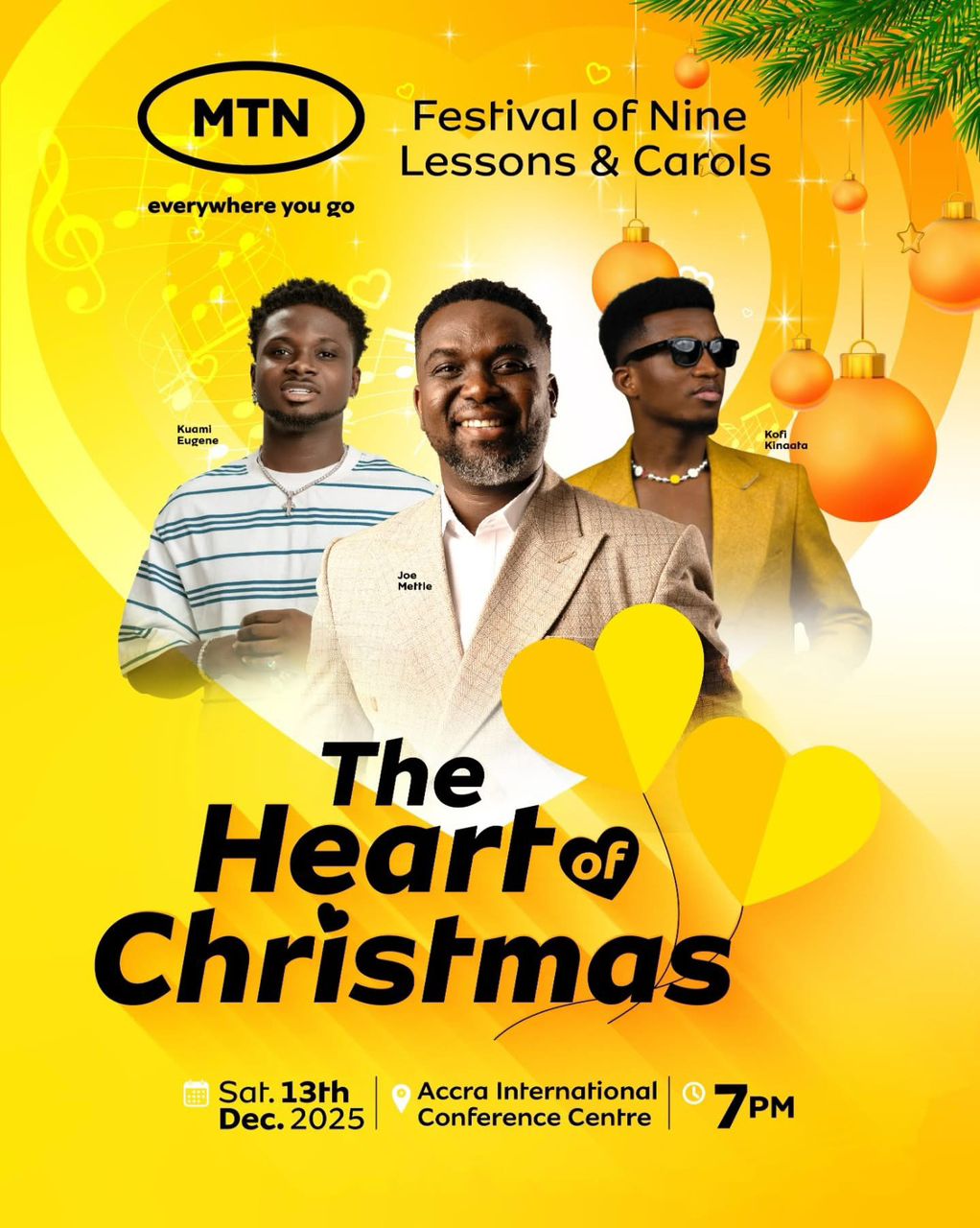 Joe Mettle, Kuami Eugene and Kofi Kinaata to Thrill Fans at MTN Festival of Nine Lessons and Carols